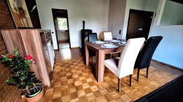 ausgestattet, und verfügt über doppelverglaste Kunststofff- und Holzfenster. Das Wohn- und Esszimmer sowie ein weiterer Raum, der an das Wohnzimmer anschließt, sind mit hochwertigem Parkettboden
