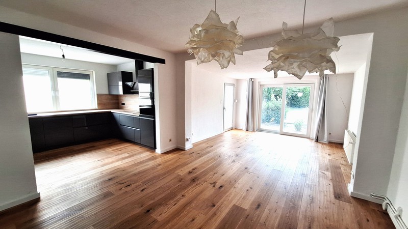 Schon beim ersten Betreten dieser 2023 liebevoll modernisierten Immobilie entsteht durch die schönen Bodenfliesen im Flur und Gäste-WC und den Parkettboden im Erdgeschoß, sowie durch die gut durchdachte Raumaufteilung ein hochwertiges und gemütliches Wohngefühl. Durch die offen gestaltete Küche, die an das Wohnzimmer mit Essbereich anschließt, bleibt bei einer Feier immer ein guter Kontakt zu den Gästen. Die neuwertige und moderne Einbauküche unterstreicht den Charakter dieses Hauses. Zu dem, neben dem Eingangsbereich befindlichen großzügigen und modernen Gäste-WC gehört auch eine Dusche. Vom Wohnzimmer aus erreichen Sie den schön und liebevoll angelegten Garten. Auch ein Carport mit einem zusätzlichen Stellplatz ist vorhanden. Des Weiteren ist im Erdgeschoß eine Ausbaureserve für einen weiteren Raum oder Wintergarten mit ca. 10m² vorhanden.