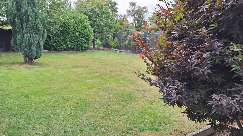 Rasenbereiche die zu jeder Tageszeit zum Relaxen, Sonnen oder Spielen einladen. Auch ein kleines Gartenhäuschen ist bereits vorhanden